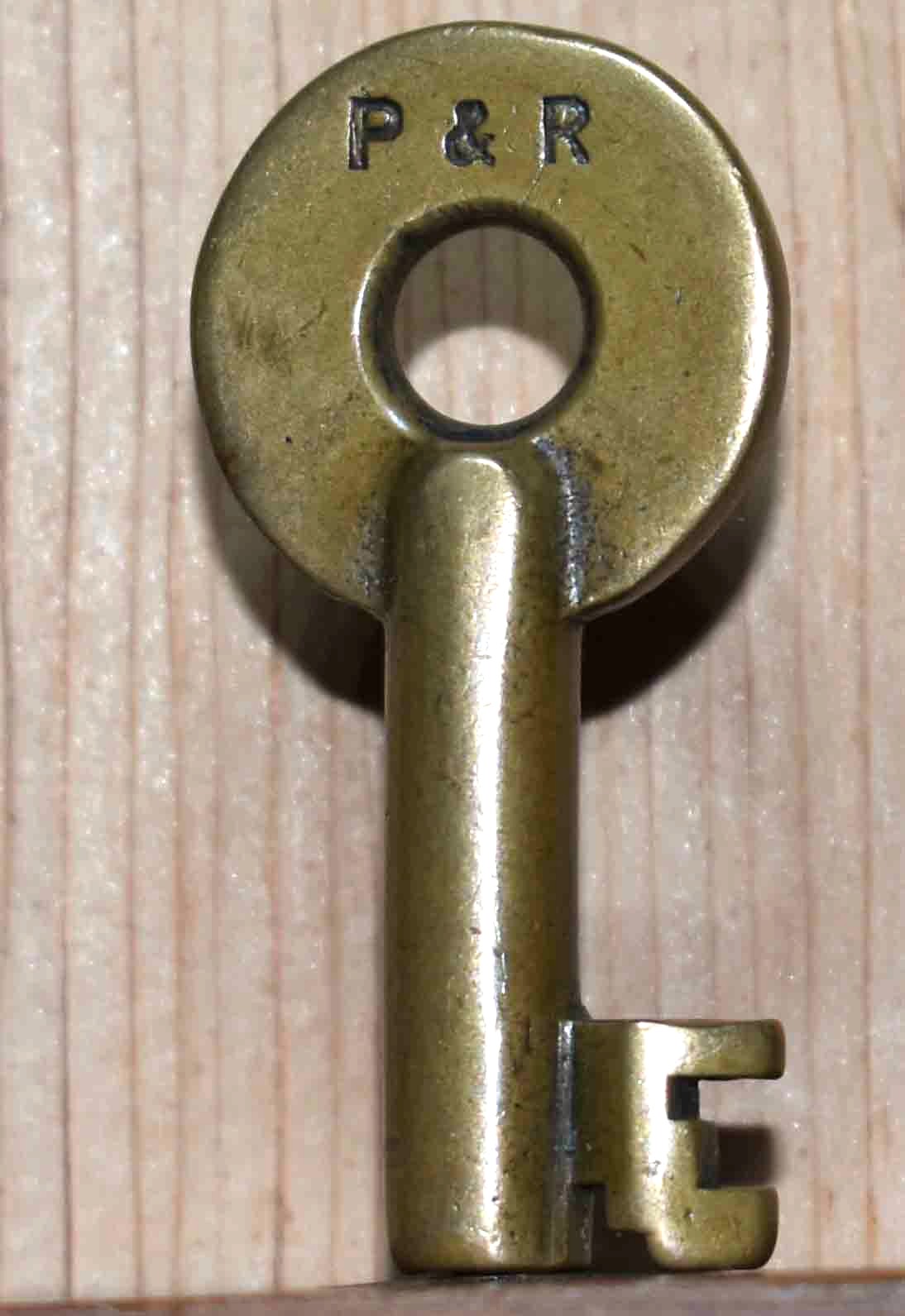 Superb stamp marks and two-tone patina. This key stamped "RY" + key above stamped "RR" = nice set. 100 year+ centenarian!