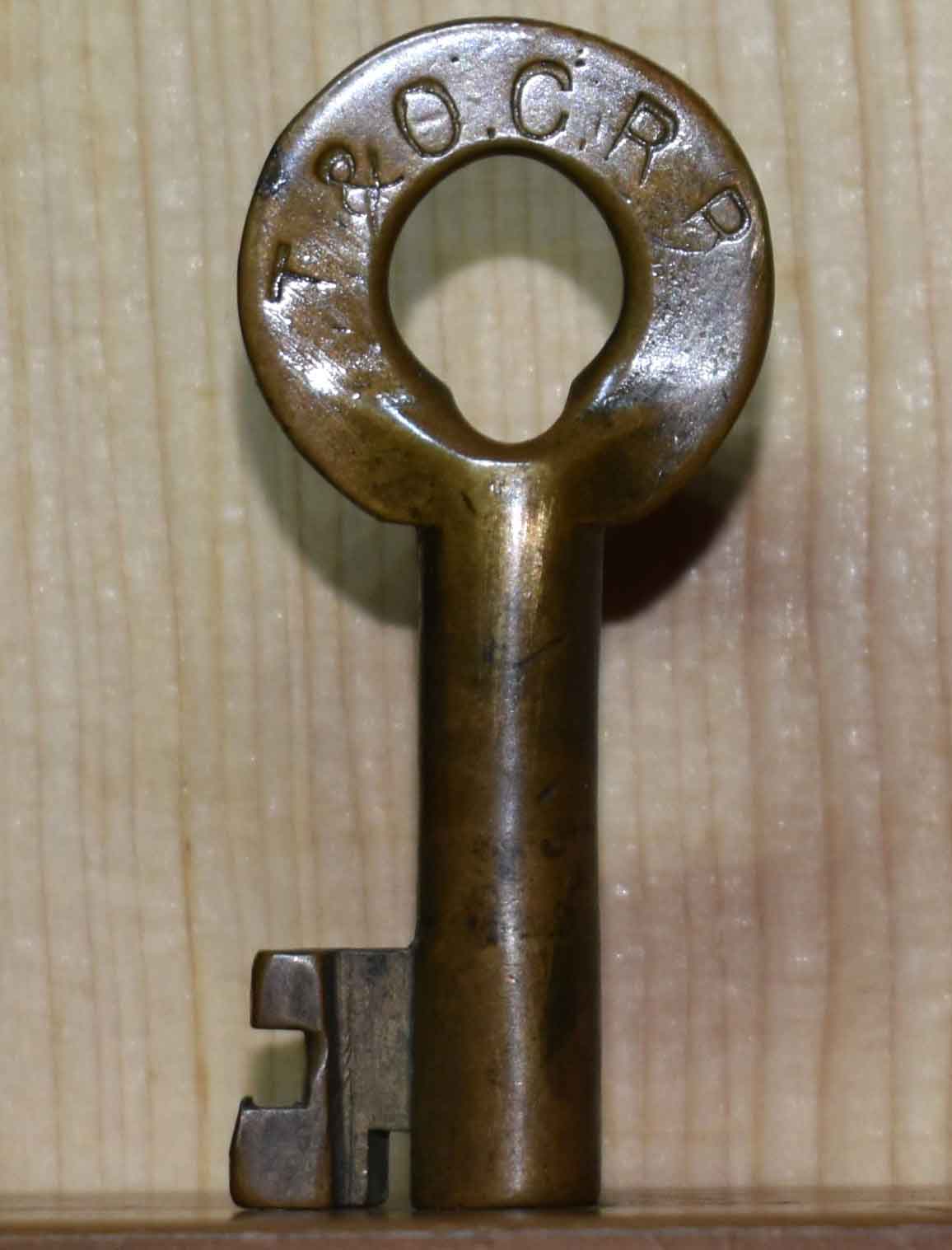 Nice pocket worn lettering and gold patina. Different style cut then TP&W keys above. Key listed in the "American Railway's Switch Key Directory."
