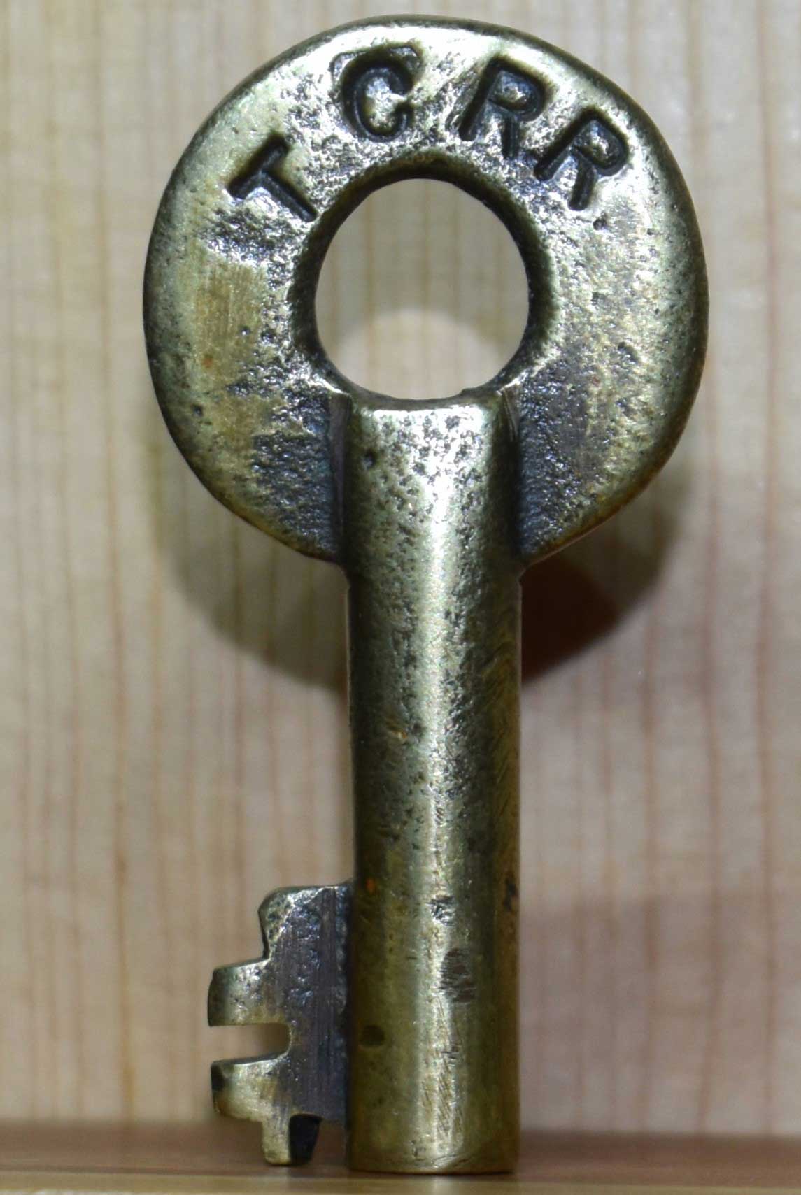 Remarks: ca. early 1900s Superb serif stamp marks and gold patina. Informed by a reliable source, this 2nd style TC key will work with locks-up to 1968. Same style cut as key above.